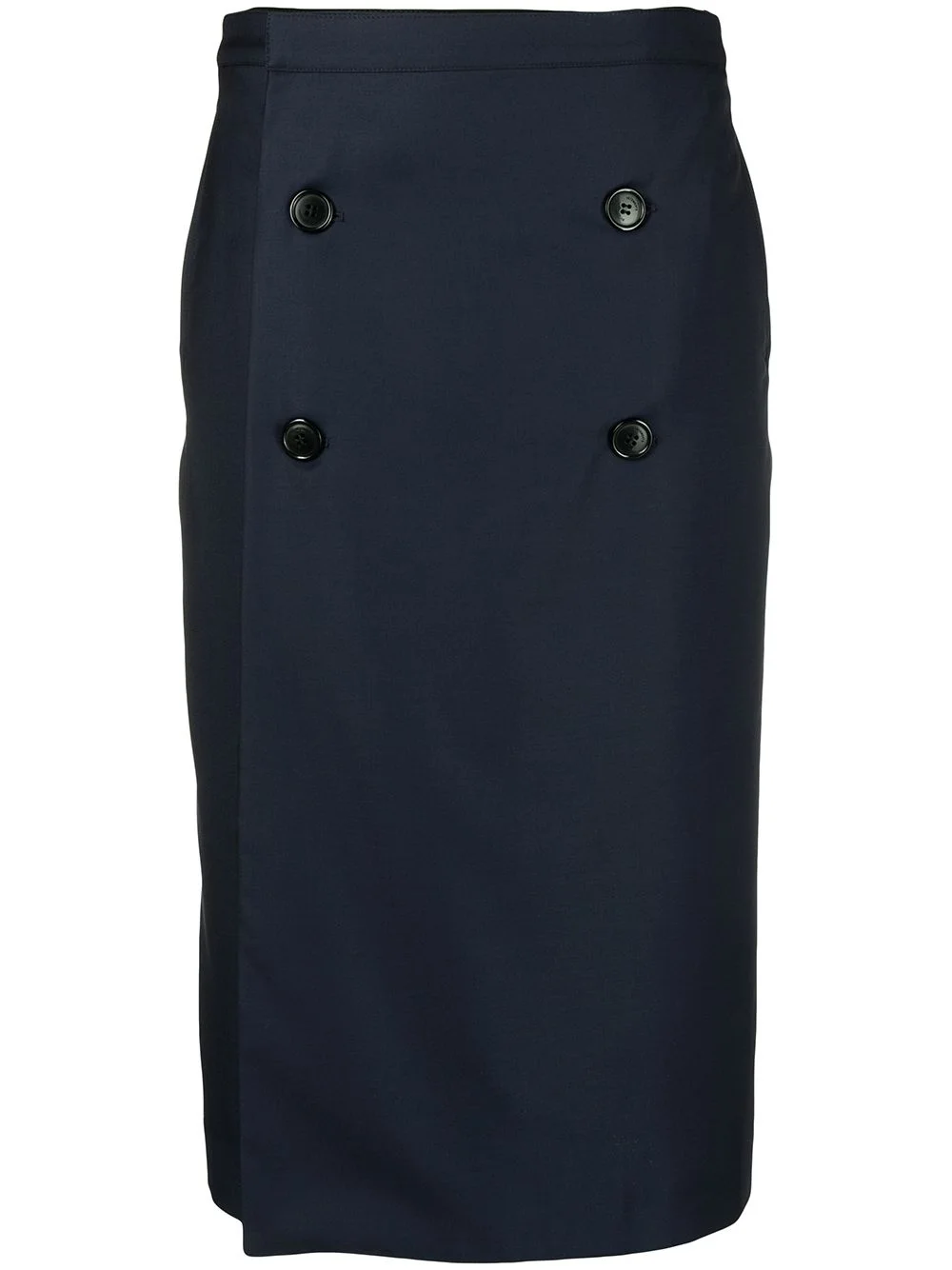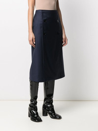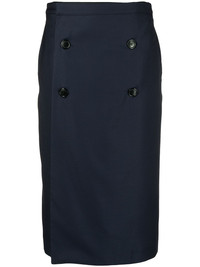 double-buttoned a-line skirt blue virgin wool-blend A-line skirt high-waisted double-buttoned detail Made in Italy Composition Lining: Viscose 100% Outer: Virgin Wool 98%, Elastane 2% SIZE & FIT Model measurements Height 5 ft 9 in(1.75 m) Bust/Chest 32.67 in(83 cm) Hips 36.22 in(92 cm) Waist 24.8 in(63 cm) Washing instructions Dry Clean Only