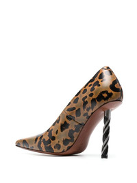 drill-heel leopard-print pumps
