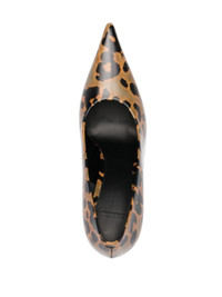 Brown leather drill-heel leopard-print pumps from VETEMENTS (VIP) featuring all-over leopard print, branded leather insole, pointed toe, slip-on style and high heel. Size & Fit HEEL: 10.5cm Fabric and Care Designer Style ID: WE51HE100L Designer Colour: 2471 LEOPARD Composition: Sole: Leather 100%; Outer: Leather 100%; Lining: Leather 100% Made in Italy
