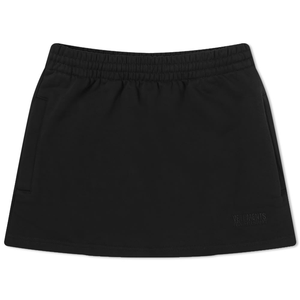 This plain black mini skirt from VETEMENTS guarantees to turn heads wherever you are. Crafted from a soft cotton blend, it features a super-comfy elasticated waist and two handy side pockets. Cut to a mini length, it's perfect for an elevated day-to-night look and pairs effortlessly with sneakers, or sling-back heels - whichever suits your style. - 80% Cotton, 20% Elastane - Elasticated Waist - 2 Side Pockets