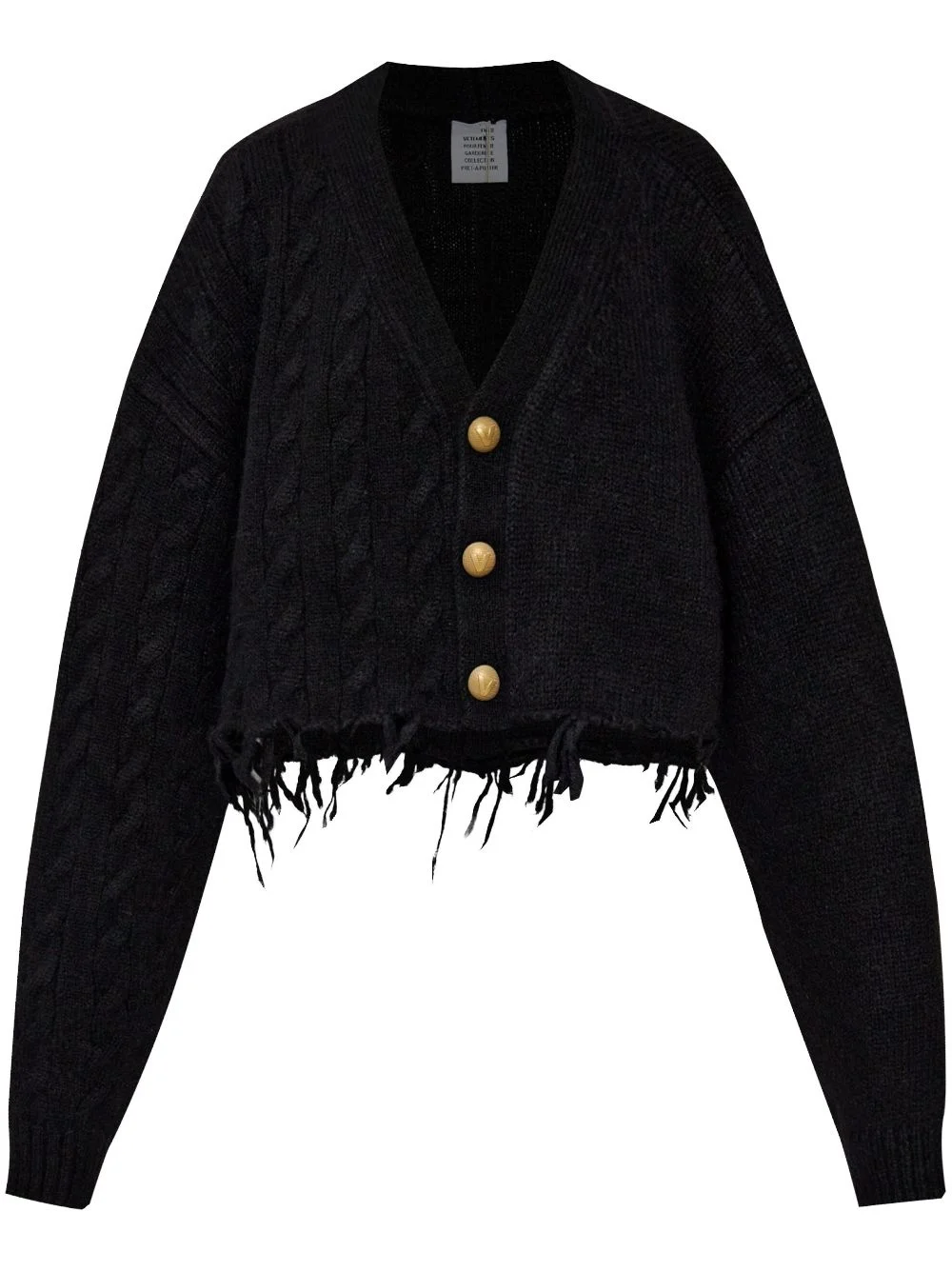 frayed cardigan Highlights - Black - Wool - V-neck - Drop shoulder - Long sleeves - Front button fastening - Frayed hem Made in Italy Composition Wool 100%