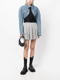 graphic-print pleated miniskirt Highlights - Light grey/lavender purple - Cotton - All-over graphic print - Fully pleated - Silver-tone hardware - High-waisted - Single rear button fastening - Thigh-length Made in Italy Composition Cotton 100% SIZE & FIT Model measurements Height 5 ft 9 in(1.76 m) Bust/Chest 31.1 in(79 cm) Hips 35.03 in(89 cm) Waist 24.4 in(62 cm) FittingInformation This mini-length skirt is intended to be worn high on the waist The elasticated waist allows for a comfortable fit Made from a midweight non-stretch fabric, this piece offers minimal elasticity when worn This piece fits true to size – take your usual size Washing instructions Machine Wash