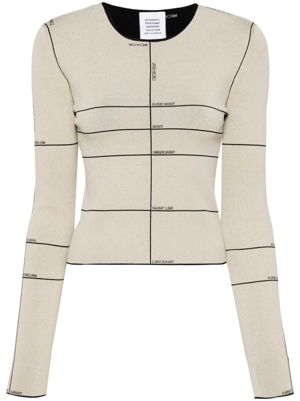intarsia-knit long-sleeved top Highlights - Beige/black - Stretch-design - Intarsia knit - Round neck - Long sleeves - Straight hem - Pull-on style Made in Italy Composition Viscose 73%, Polyester 15%, Polyamide 10%, Elastane 2% SIZE & FIT Model measurements Height 5 ft 10 in(1.78 m) Bust/Chest 32.67 in(83 cm) Hips 37 in(94 cm) Waist 25.59 in(65 cm) FittingInformation Designed for a close fit throughout Made with a midweight knit, this piece offers some stretch This piece fits true to size – take your usual size