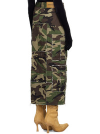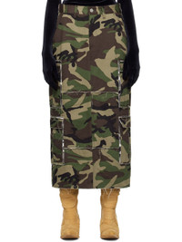 Cotton twill skirt. Camouflage pattern and raw edges throughout. · Paneled construction · Belt loops · Two-pocket styling · Zip-fly · Cargo pockets at outseams · Leather logo patch at back waistband · Logo-engraved silver-tone hardware · Contrast stitching in black Supplier color: Green/White camo 100% cotton. Made in Italy 242669F093000