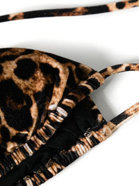leopard-print velour bikini top Highlights - Animalier brown/black/white - Stretch-design - Velour - Leopard print - Triangle cup - Halterneck - Rear tie fastening - Full lining - Be mindful to try on swimwear over your own garments. Made in Italy Composition Outer: Polyamide 85%, Elastane 15% Lining: Polyamide 82%, Elastane 18%