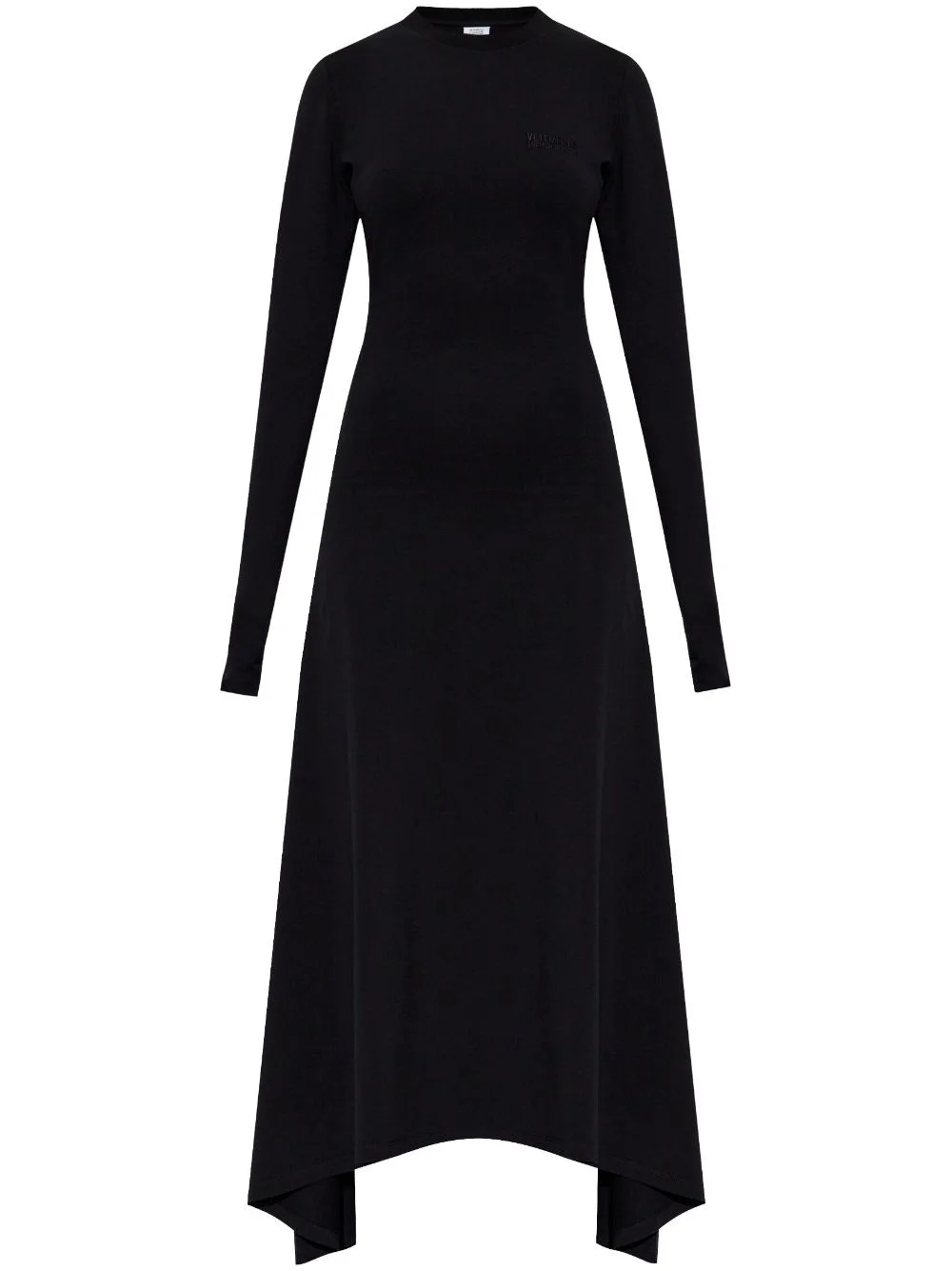 logo-embroidered maxi dress Highlights - Black - Cotton blend - Stretch-design - Embroidered logo to the rear - Long sleeves - Asymmetric hem - Ankle-length Imported Composition Cotton 93%, Elastane 7%