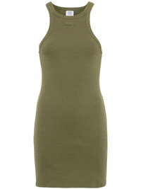logo-embroidered ribbed mini dress Highlights - Olive green - Stretch-cotton - Fine ribbed - Rounded collar - Sleeveless - Embroidered logo at the chest and to the rear - Internal logo tag - Thigh-length - Straight hem Imported Composition Cotton 99%, Elastane 1% SIZE & FIT Model measurements Height 5 ft 10 in(1.77 m) Bust/Chest 33.07 in(84 cm) Hips 37 in(94 cm) Waist 24.8 in(63 cm) FittingInformation Designed for a close fit throughout Made from a midweight stretch fabric, this piece offers elasticity and flexibility when worn This piece fits true to size – take your usual size