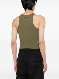 logo-embroidered vest top Vetements' khaki vest top is embroidered with logo lettering at the chest in tonal threads. Highlights - Khaki - Cotton blend - Ribbed knit - Embroidered logo at the chest - Round neck - Sleeveless - When buying this unisex item, keep in mind that it is graded in standard men's sizing Imported Composition Outer: Cotton 99%, Elastane 1% SIZE & FIT Model measurements Height 6 ft 2 in(1.87 m) Bust/Chest 34.25 in(87 cm) Hips 36.22 in(92 cm) Waist 29.52 in(75 cm) FittingInformation This unisex piece is designed for a close fit whether you usually select women's or men's sizes Made from a midweight non-stretch fabric, this piece offers minimal elasticity when worn Washing instructions Machine Wash