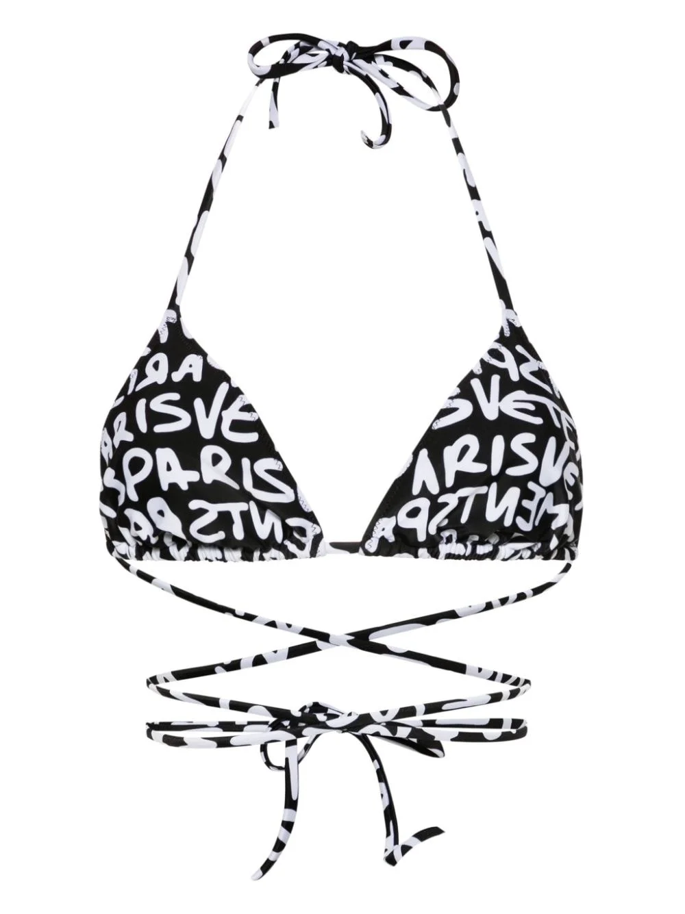 logo-print triangle bikini top Highlights - Black/white - Stretch-design - Monogram pattern - Halterneck tie fastening - Triangle cup - Pads - Rear tie fastening - Be mindful to try on swimwear over your own garments. Made in Italy Composition Outer: Polyamide 78%, Elastane 22% Lining: Polyamide 82%, Elastane 18% Washing instructions Hand Wash