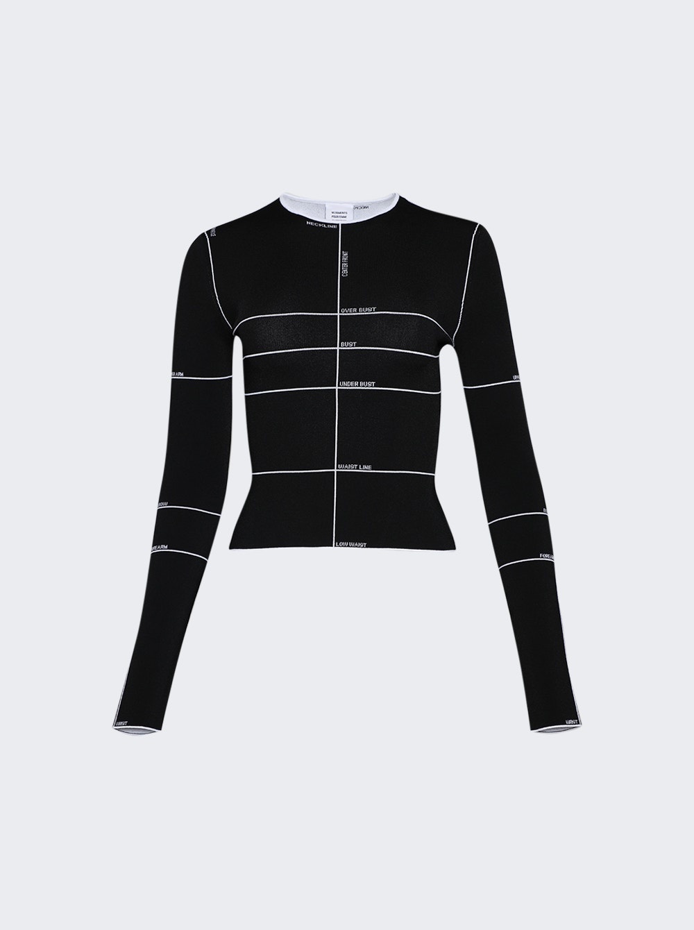 Details - Fitted fit - Round neck - Long sleeves - Pull on style - Straight hem - Care according to label - Material: 73% Viscose, 15% Polyester, 10% Polyamide, 2% Elastane - Model is 5'9"/175cm and is wearing a size S Brand Style: WA65KR560B Designer/Brand: VETEMENTS