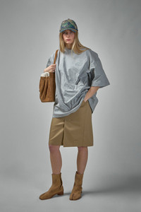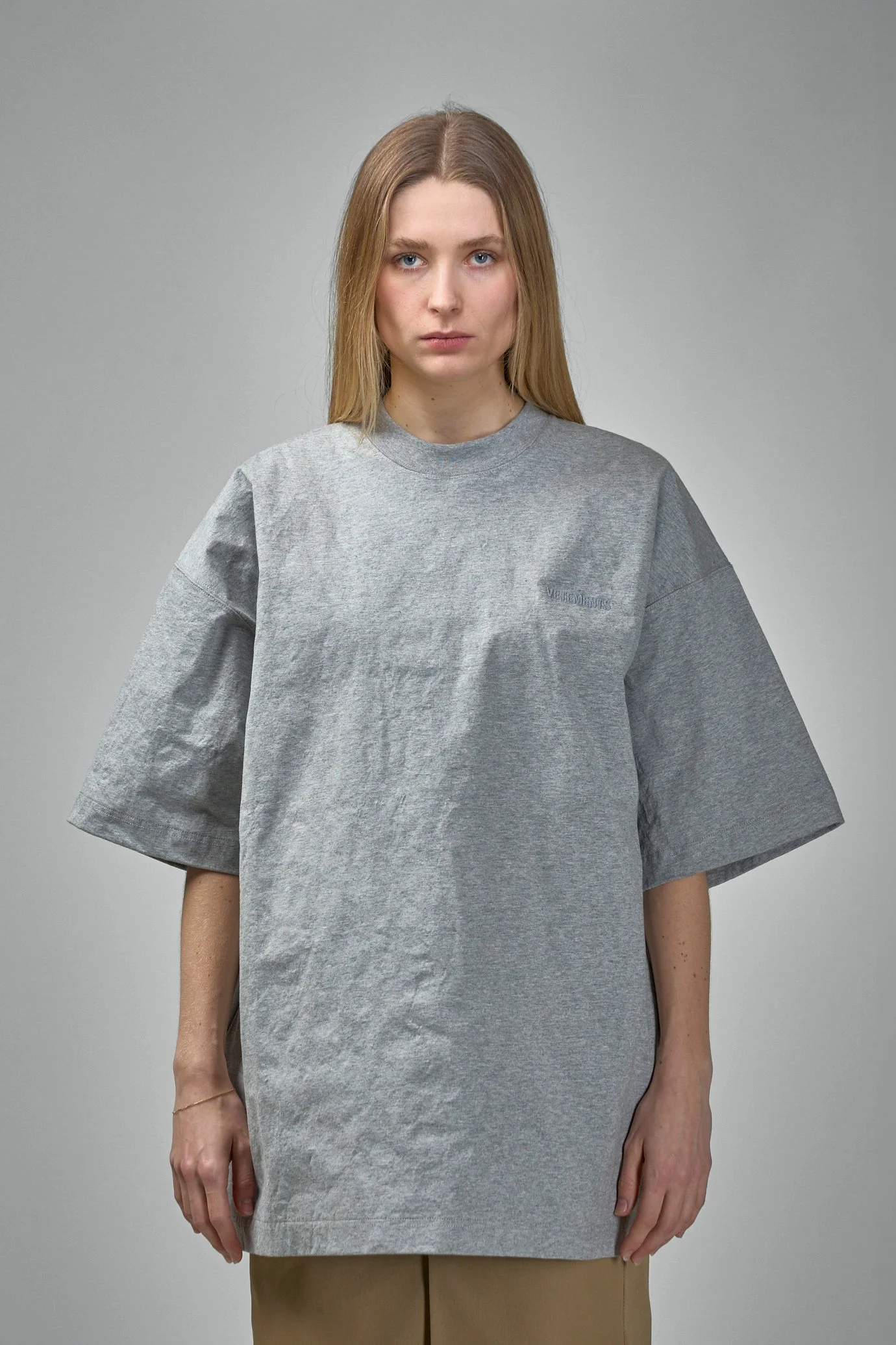 - crickled - short sleeves - round neck Materials: 100% cotton Color: grey melange SKU: 148182 Brand style: UA66TR120G Size and Fit The model is 1.89m (6.2ft) and wears a size S. Intentionally designed with a looser, oversized look. If you prefer a more fitted look, you may opt for a size smaller.