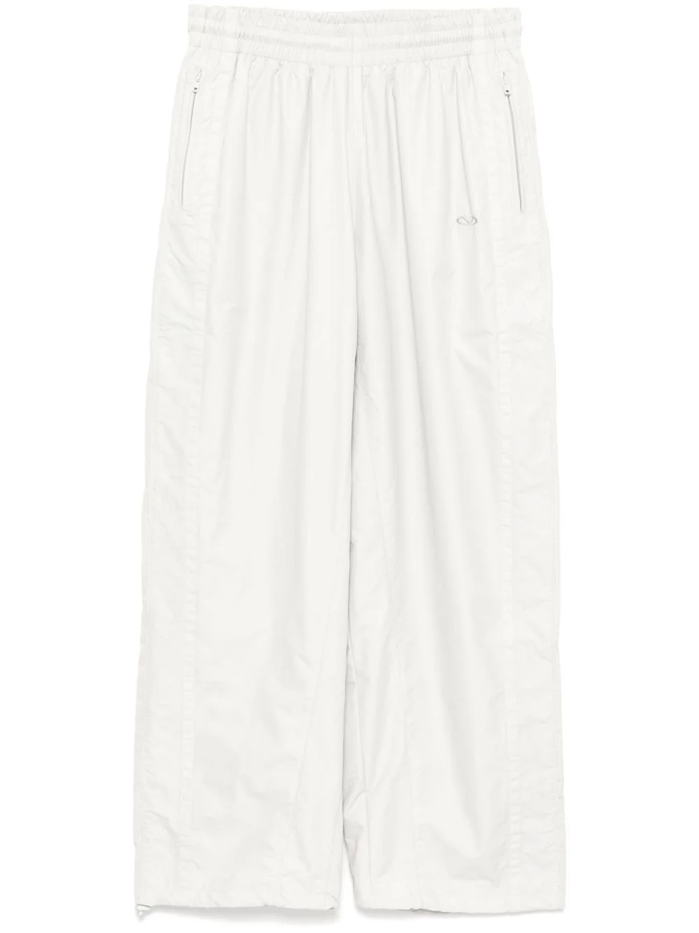 oval logo tracksuit pants Highlights - Grey - Elasticated waistband with internal drawstring - Two zip-fastening pockets Made in Italy Composition Lining: Polyamide 100% Outer: Polyamide 100% SIZE & FIT Model measurements Height 5 ft 9 in(1.76 m) Bust/Chest 31.1 in(79 cm) Hips 35.03 in(89 cm) Waist 24.4 in(62 cm) FittingInformation Designed with a wide-leg cut, these trousers allow for a close fit at the waist and offer a loose and roomy fit over the leg The internal drawstring at the hem allows for fitted preferences at the ankle Made from a midweight non-stretch fabric