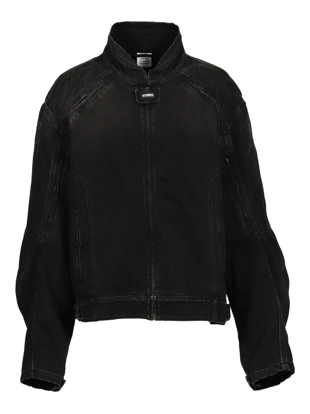 panelled denim jacket Highlights - Black - Cotton - Denim - Zip fastening - High neck - Side pockets Imported Composition Cotton 100% Washing instructions Read Manufacturer Guidelines