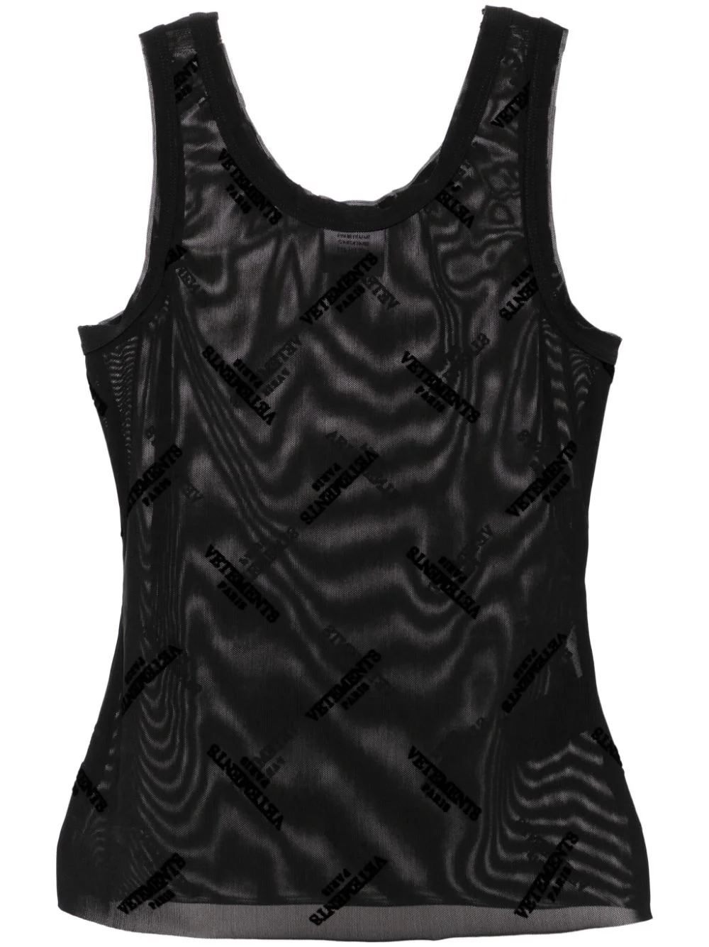 Power tank top Highlights - Black - Mesh design - Stretch-design - Monogram pattern - Devore effect logo - Crew neck - Sleeveless - Straight hem Made in Italy Composition Nylon 84%, Elastane 16% SIZE & FIT Model measurements Height 5 ft 9 in(1.76 m) Bust/Chest 31.1 in(79 cm) Hips 35.03 in(89 cm) Waist 24.4 in(62 cm) FittingInformation Designed for a slim fit that sits just away from the body offering a close yet comfortable fit Made from a lightweight stretch fabric, this piece offers elasticity and flexibility when worn