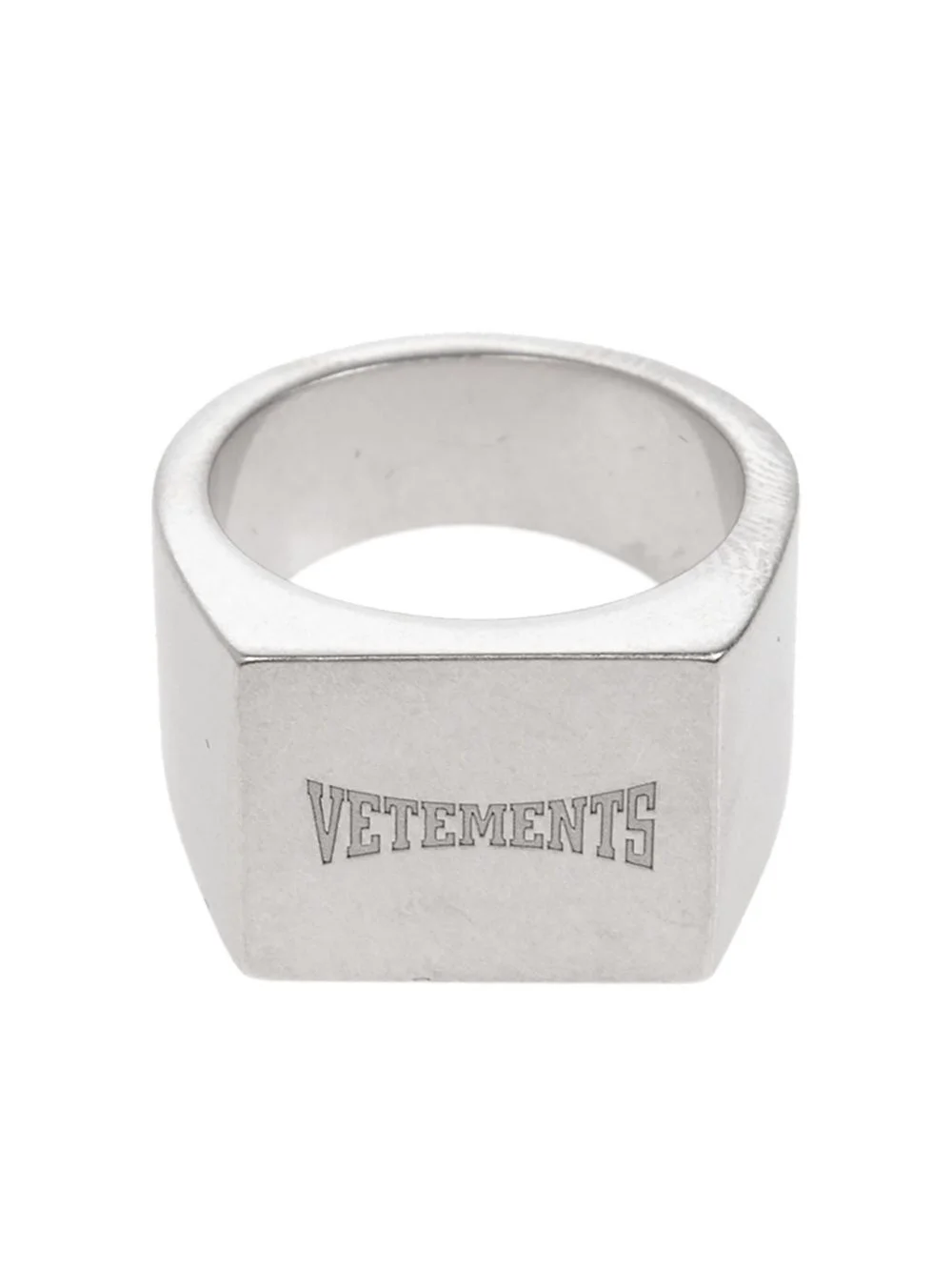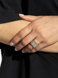 rectangular signet ring Highlights - Silver - Brass construction - Rectangular face - Engraved lettering - Flat band - Signet style Made in Italy Washing instructions Read Manufacturer Guidelines