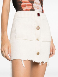 rhinestone-embellished knitted miniskirt Highlights - Cream white - Alpaca wool-blend - Knitted construction - Crystal embellishment - Fringed edge - Front button fastening - Thigh-length - Straight hem Made in Italy Composition Alpaca Wool 56%, Polyamide 34%, Wool 10% SIZE & FIT Model measurements Height 5 ft 10 in(1.79 m) Bust/Chest 33.07 in(84 cm) Hips 35.82 in(91 cm) Waist 24.01 in(61 cm) FittingInformation This mini-length skirt is intended to be worn just below the waist Made with a midweight knit, this piece offers some stretch This piece fits true to size – take your usual size Washing instructions Hand Wash