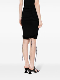 ruched pencil skirt Highlights - Black - Stretch-jersey - Ruched detailing - Logo trim - High-waisted - Drawstring fastening - Straight hem - Knee-length Imported Composition Viscose 94%, Elastane 6% SIZE & FIT Model measurements Height 5 ft 9 in(1.76 m) Bust/Chest 31.1 in(79 cm) Hips 35.03 in(89 cm) Waist 24.4 in(62 cm) FittingInformation This midi-length skirt is intended to be worn just below the waist Made from a midweight stretch fabric, this piece offers elasticity and flexibility when worn This piece fits true to size – take your usual size
