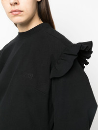 ruffle-detail midi dress VETEMENTS elevates this cotton midi dress for AW23 with ruffle detailing at the shoulders and hem and an embroidered logo at the chest. Highlights - Black - Cotton - Ruffled detailing - Embroidered logo at the chest - Round neck - Long sleeves - Flared hem - Below-knee length Imported Composition Cotton 100% SIZE & FIT Model measurements Height 5 ft 11 in(1.8 m) Bust/Chest 31.49 in(80 cm) Hips 36.22 in(92 cm) Waist 25.59 in(65 cm) FittingInformation Designed to be unstructured, offering a loose fit throughout Made from a midweight non-stretch fabric, this piece offers minimal elasticity when worn This piece fits true to size – take your usual size