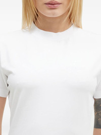 short-sleeve T-shirt Highlights - White - Short sleeves - Round neck - Straight hem Imported Composition Cotton 93%, Elastane 7% Washing instructions Read Manufacturer Guidelines