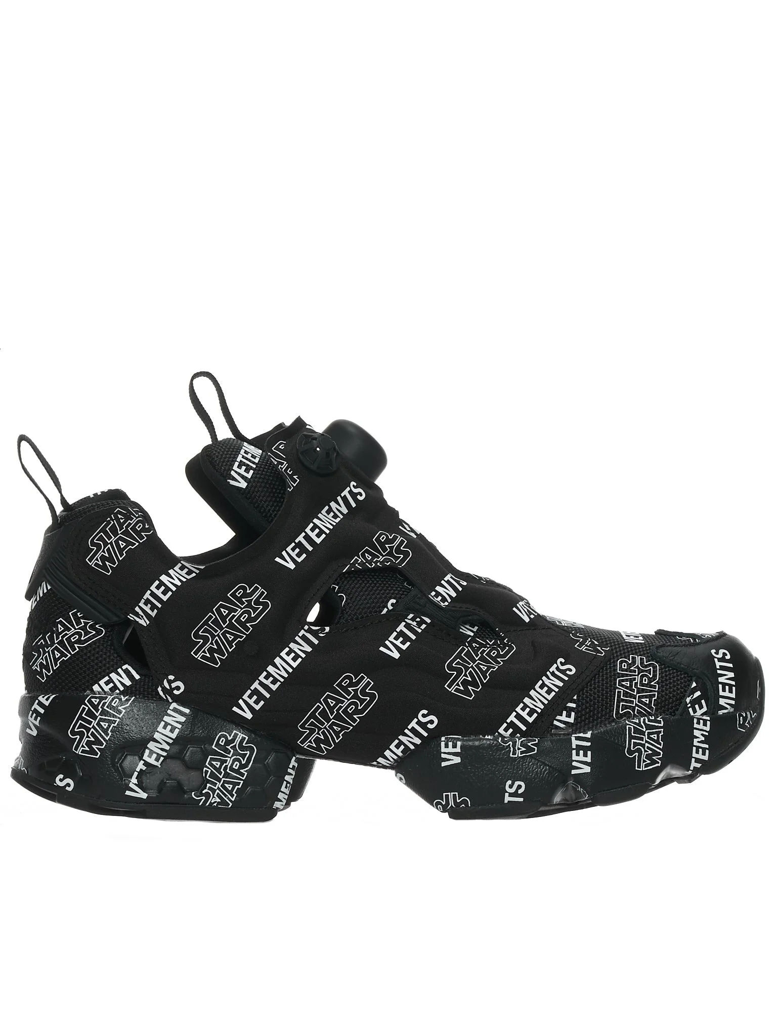 Vetements X Reebok trainers in multicolor, low-top mesh construction, cut-outs throughout, round toe, all over graphic print, signature pump system at vamp, grosgrain pull-loop at padded tongue and heel collar, tonal textured rubber midsole, tonal treaded rubber outsole. Made in Vietnam. European Sizing.