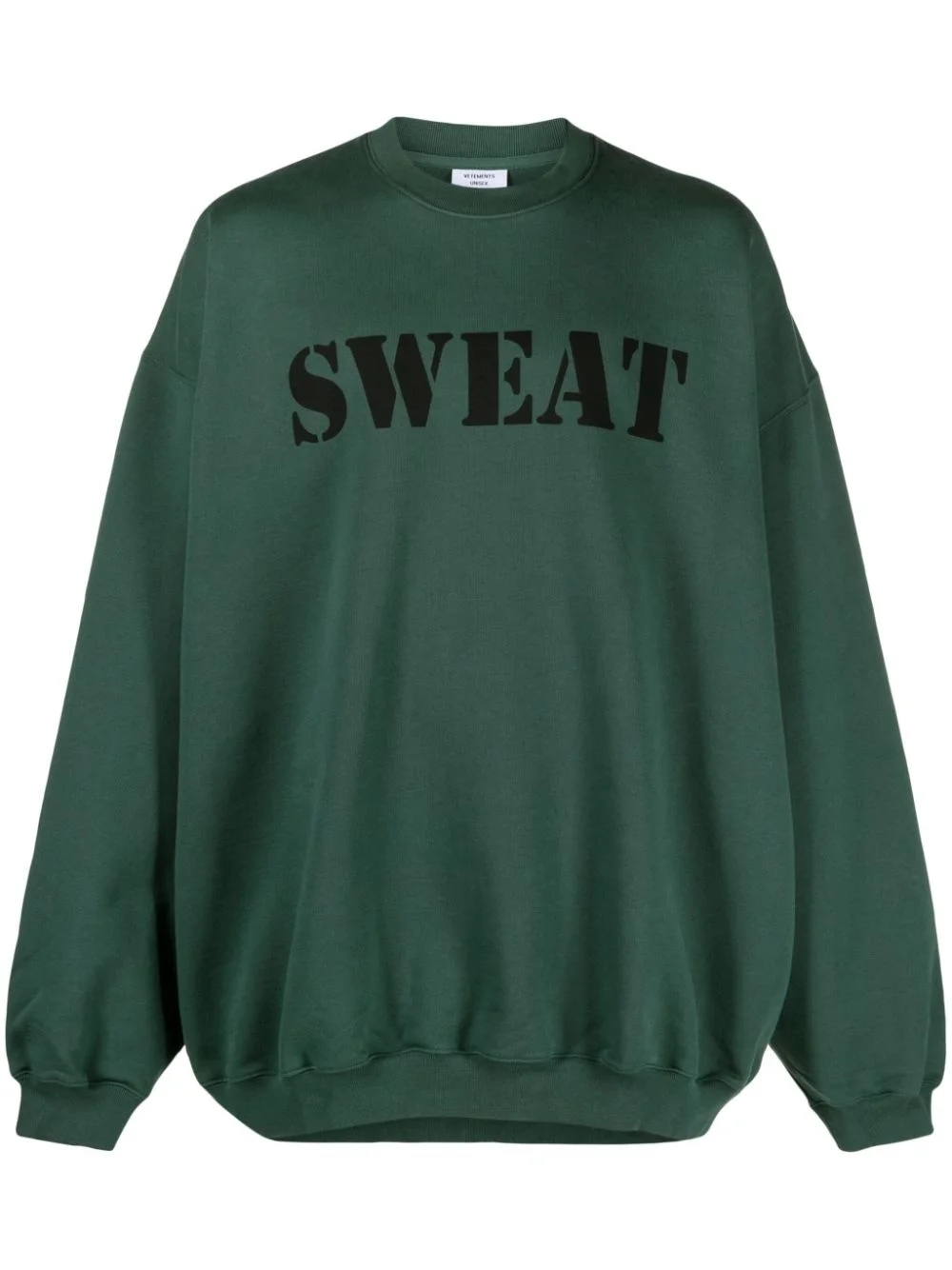 Sweat cotton-blend sweatshirt Highlights - Racing green - Cotton blend - Jersey texture - Text print - Embroidered logo to the rear - Crew neck - Drop shoulder - Long sleeves - Ribbed cuffs and hem - When buying this unisex item, keep in mind that it is graded in standard men's sizing. Imported Composition Cotton 80%, Polyester 20% SIZE & FIT Model measurements Height 5 ft 11 in(1.8 m) Bust/Chest 32.67 in(83 cm) Hips 36.22 in(92 cm) Waist 24.4 in(62 cm) FittingInformation This unisex piece is designed for an oversized fit whether you usually select women's or men's sizes Made from a midweight non-stretch fabric, this piece offers minimal elasticity when worn This piece fits true to size – take your usual size Washing instructions Machine Wash