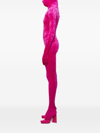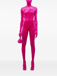 velvet jumpsuit Highlights - Bright pink - Velvet finish - Long sleeves - Attached gloves - Attached hood - Attached socks Imported Composition Velvet 100% Washing instructions Read Manufacturer Guidelines