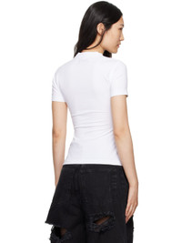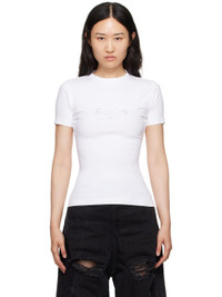 Stretch cotton jersey T-shirt. · Rib knit crewneck · Crystal-cut text bonded at front · Logo embroidered at back collar Supplier color: White 93% cotton, 7% elastane. Made in Portugal 242669F110004