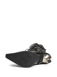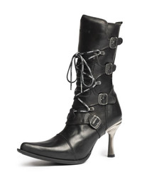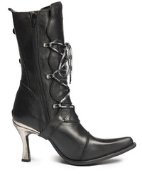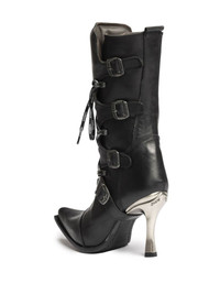 x New Rock 90mm Rockstar boots Highlights - Black - Calf leather - Smooth grain - Panelled design - Side buckle fastening - 90mm sculpted heel - Pull-tab at the heel - Faux lace-up design - Oversize tongue - Pointed toe - Leather sole - Branded insole Imported Composition Leather 100%