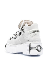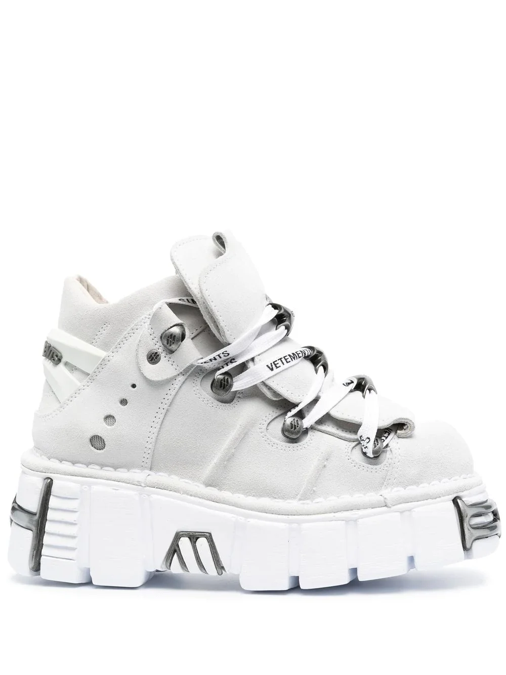 New Rock platform sneakers white calf leather/calf suede round toe front lace-up fastening ankle-length rubber sole platform sole Imported Composition Lining: Calf Leather 100% Outer: Calf Suede 100% Sole: Rubber 100% SIZE & FIT Measurement HEEL 2.75 in(7 cm) HEIGHT 3.74 in(9.5 cm) PLATFORM 1.57 in(4 cm)