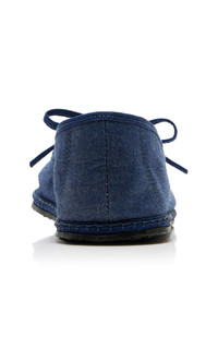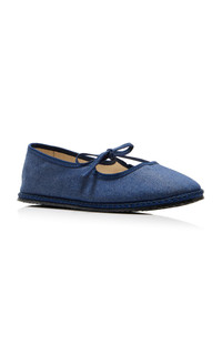 Sisters Viola and Vera Arrivabene Valenti Gonzaga founded ViBi VENEZiA with a shared love of 'The Furlana' — a quintessential Venetian slipper that dates back to the XIX century, when ingenious women from Friuli began producing footwear with leftover fabrics and old bicycle tires. Each pair is handmade by local shoemakers using traditional techniques passed down through generations. Made from woven linen, the classic Mary Jane silhouette gets an update with an adjustable instep strap for a comfy, customizable fit. PRODUCT DETAILS - Tie fastening - Composition: cotton denim - Imported