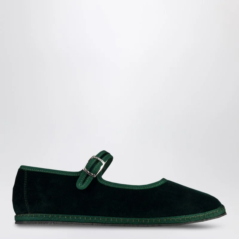 Mary Jane by Vibi Venezia in green velvet with adjustable buckle strap and rubber sole.