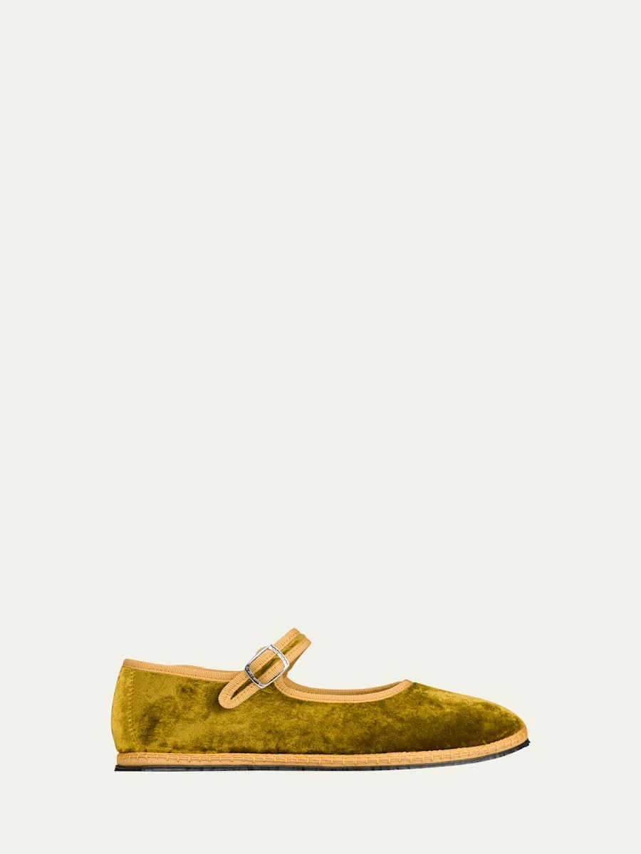Vibi Venezia viscose and silk velvet ballerina flats with cotton grosgrain trim Flat heel Round toe Mary Jane buckle strap Rubber outsole Lining: Cotton Made in Italy Online Inquiries: BGS21_X6YNZ| Store Inquiries: #5060085