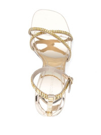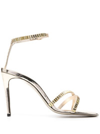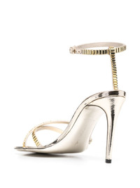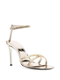 100mm crystal-embellished sandals Highlights - Gold-tone - Calf leather - Metallic effect - Crystal embellishment - Crossover strap at the toe - Buckle-fastening ankle strap - Open toe - Branded insole - High heel Made in Italy Composition Outer: Rhinestone 100%, Satin Ribbon 100% Lining: Calf Leather 100% Sole: Calf Leather 100% SIZE & FIT Measurement CIRCUMFERENCE 7.9 in(20 cm) HEEL 3.9 in(10 cm) HEIGHT 2.8 in(7 cm)