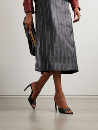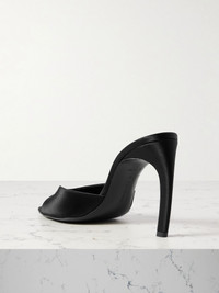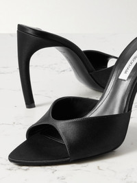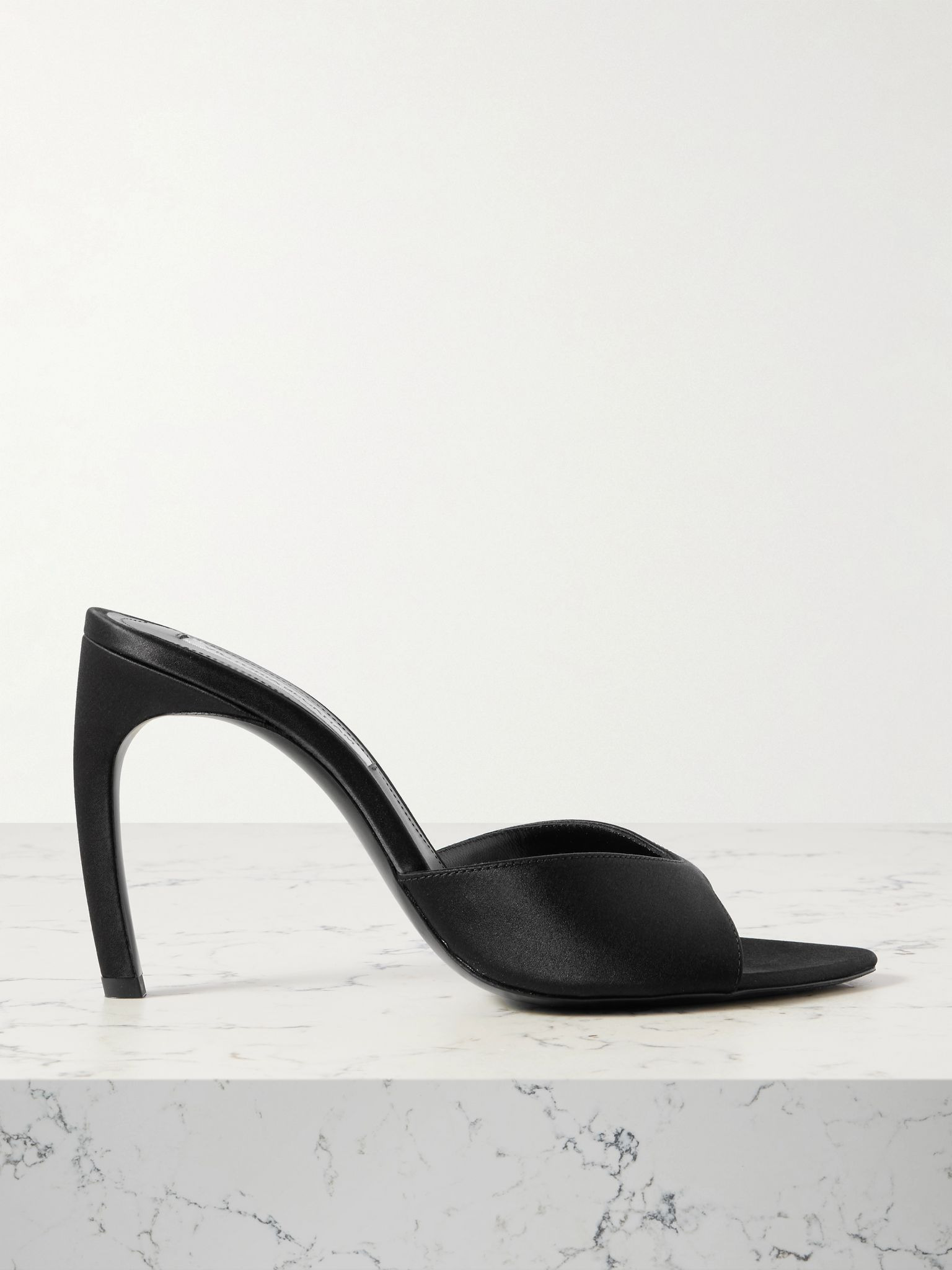 The curved 'banana' heels on Victoria Beckham's mules instantly set them apart from others. They're made from black satin and have peep toes. Wear yours with high hemlines to showcase the distinct detail. Size & Fit - Fits true to size, take your normal size - Only available in full sizes, go up to the nearest whole size if you take a half size - Italian sizing Details & Care - Heel measures approximately 100mm/ 4 inches - Black satin - Slip on