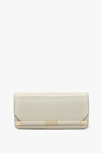 Unapologetically glamorous, the 202 Clutch Bag in Ivory takes inspiration from classic menswear accessories. The front cufflink detail imbues the clutch with its distinctive personality and reflects the house’s penchant for flipping traditional design codes. Signature gold hardware, including a Victoria Beckham logo and unique serial number, add polish while the choice of distressed leather brings a vintage sensibility. Inside there is a double compartment and small flat leather pocket for secure storage. Size & Fit - Height: 11cm, Width: 23cm, Depth: 6cm Product Details - Textured Shiny Calf leather - Internal single compartment - Small internal flat leather pocket - Front covered cufflink detail - Features our signature gold branding with VB logo and a unique code - Synthetic nappa leather lining - 100% Leather - Made in Italy