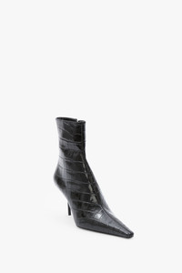 Sloan Stiletto Ankle Boot In Black Croc Embossed Leather