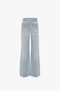 The Alina Jean is one of our signature denim silhouettes and a favourite of Victoria’s. It’s inspired by classic 70s styles, with a high waist and wide, flared legs. Made from a classic lightweight denim in 100% cotton, they’re made to hold their shape, retaining structure as you wear them. The wash is ultra-light and bleached out, making this style an ideal transitional piece to see you through the seasons. Detail comes in the form of front and back patch pockets, branded shanks and rivets, a leather patch on the waistband, a red-stitch buttonhole and VB embroidery. Product Details - Classic Light Denim Fabrication - Main: 100% Cotton - Machine Wash - Fits true to size, take your regular size - The model's height is 178cm and is wearing a size 25