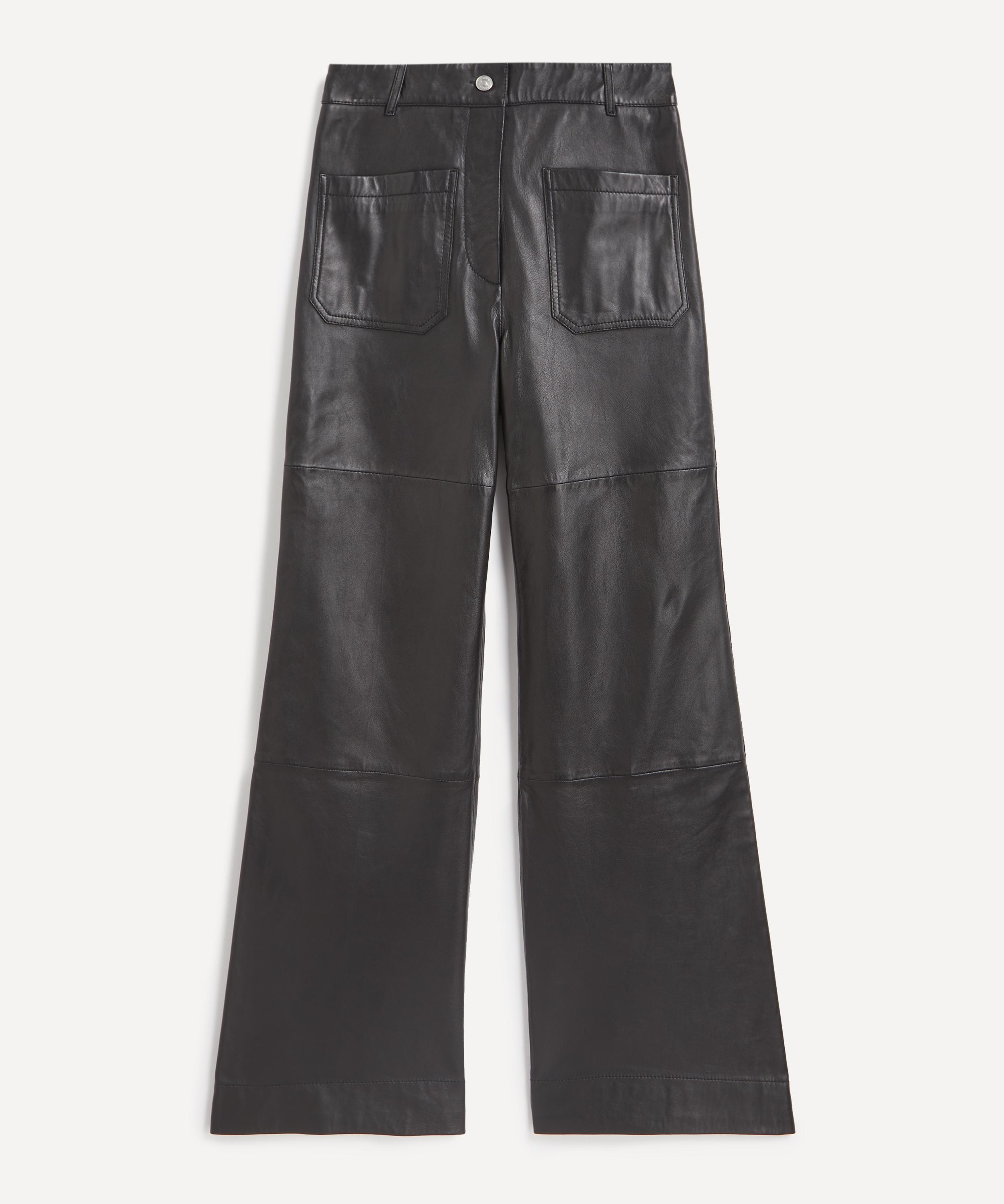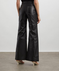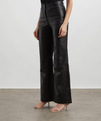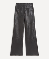 DETAILS Nappa leather trousers High rise Flared wide leg Front and back patch pockets Half lined with cotton SIZE & FIT Model is 178cm/5'10"; Chest: 81cm; Waist: 66cm; Hip: 91cm and wears a size 8 COMPOSITION & CARE 100% Lamb leather Leather specialist dry clean only