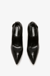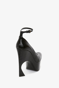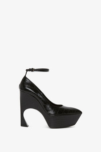 A directional design for the new season, these sculptural pumps in an embossed croc leather finish have a curved heel that is both feminine and futuristic. A key silhouette in the AW23 footwear edit and one of Victoria’s favourite styles, they have a wedge sole that provides height, but also comfort and stability. The ankle strap is adjustable, and the pointed toe design adds a contemporary finish. Product Details - Embossed croc style leather - Sculptural wedge with a curved silhouette, and pointy toe - Adjustable ankle strap - Main: 100% calf leather - Heel height: 100mm - Made in Italy