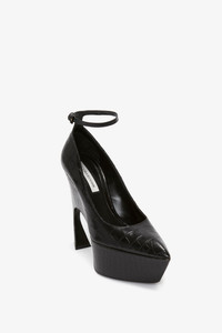 Ankle Strap Wedge Pump In Black Croc-Effect Leather