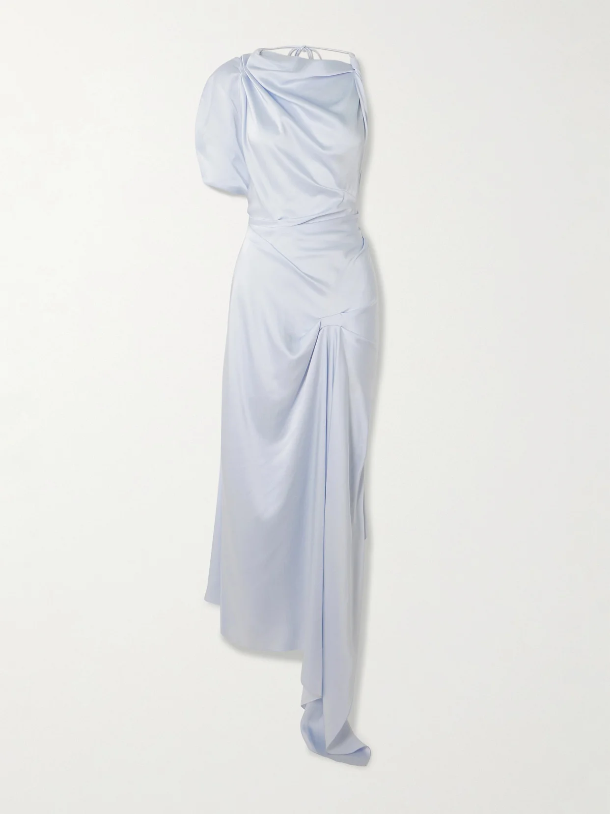 EXCLUSIVE AT NET-A-PORTER. Victoria Beckham's midi dress comes in a shade of 'Ice' blue that'll suit the warmer seasons as well as the winter. Made from lustrous satin-crepe, it's twisted and draped into a one-shoulder neckline and is gathered through the flowing asymmetric skirt.
