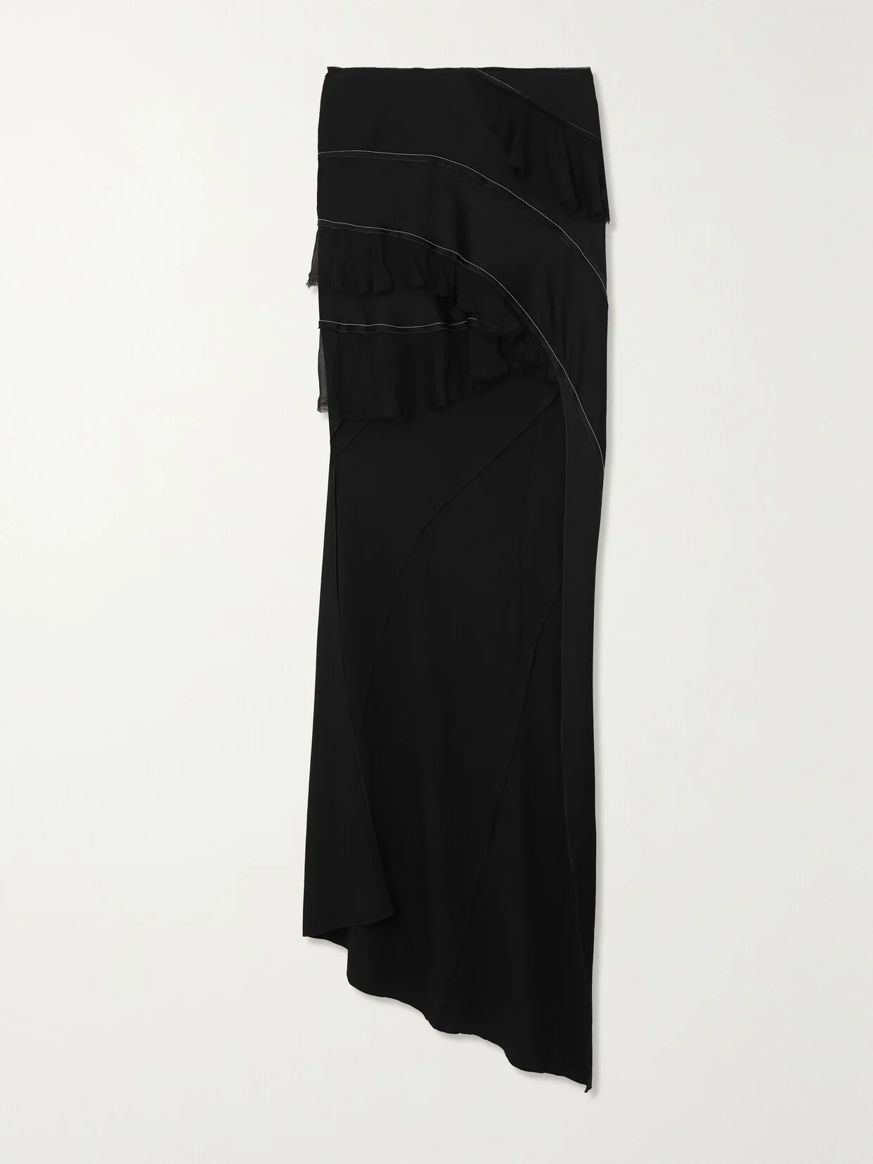 Asymmetric Ruffled Chiffon-trimmed Crepe De Chine Maxi Skirt