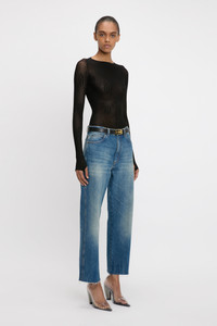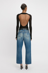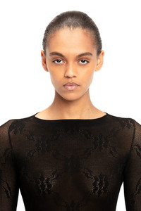 Exuding modern sexiness, the Long Sleeve Backless Bodysuit in Black is meticulously crafted from a sheer lace pointelle knit. With a directional slash neckline and fully exposed back with knitted trim, it also has modest long sleeves with a contemporary thumbhole detail. Adjustable snap closures ensure absolute comfort. Styled with the Relaxed Curve Jean, PVC Heel & Frame Belt Product Details - Slash neck - Long sleeves with thumbholes - Sheer lace pointelle knit - Open back with knitted trim - Bodysuit with adjustable snap closure - Fits true to size, take your regular size - The Model height is 5’11’’/ 180cm and is wearing a size S - 83% Viscose 17% Nylon - Made in China