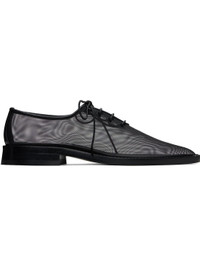 Sheer mesh derbys in black. · Pointed toe · Lace-up closure · Stacked leather heel with rubber injection · Leather sole Supplier color: Black Upper: textile. Sole: leather. Made in Italy 251784F120000