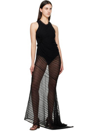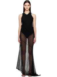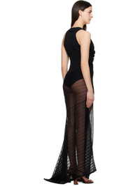 Semi-sheer rib-knit cotton-blend maxi dress. · Ruffled trim at round neck and side seam · Slit at side seam · Logo-embroidered locker loop at back collar Supplier color: Black 84% cotton, 16% polyamide. Made in Turkey 251784F055002