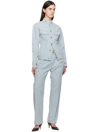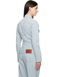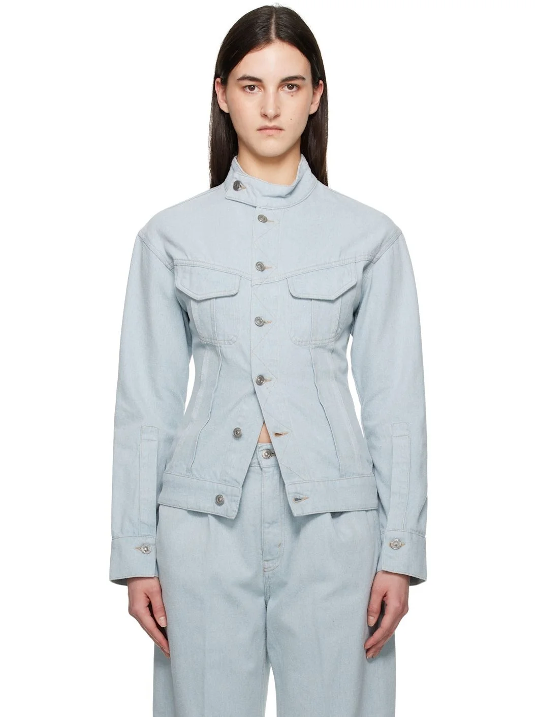 Non-stretch recycled cotton-blend denim jacket. Fading throughout. · Stand collar · Button closure · Flap pockets · Cropped hem · Buttoned barrel cuffs · Logo patch at back hem · Contrast stitching in tan Supplier color: Light azul 60% recycled cotton, 40% cotton. Made in Italy 251784F060001