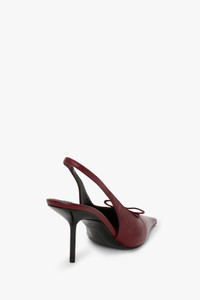 A discreet but coquettish bow detail adds a playful finish to the Stiletto Heel Bow Detail Slingback. Crafted in Italy from smooth Burgundy kidskin leather with a black lacquered 75mm heel for a polished aesthetic, it has a distinctive pinched, closed-toe design that is both elongating and elegant. Leather lining and a padded insock complete the look. Size & Fit - 75mm stiletto heel - Fits true to size, take your regular size Product Details - Pinched, elongated closed toe shape - Bow detail - Black lacquered heel - Kidskin upper - Leather lining - Padded in-sock for added comfort - 100% Leather - Made in Italy