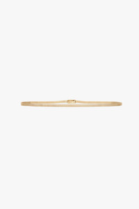 An elegant addition to the house’s accessories edit, the Brass Micro Frame Belt has a restrained but refined silhouette. Presented in an attractive shade of Light Gold, it is ideal for adding a delicate point of difference to masculine tailoring or feminine separates. Styled with the Twist Detail Scarf Top & Wide Leg Turn-Up Trouser Size & Fit - Strap width: 20mm - Buckle: Height 17.5 mm Length 33.5 mm Product Details - Luxury gold plated hardware - Smooth calf leather - 100% Calf leather - Wipe clean with a soft, dry cloth - Made In Italy