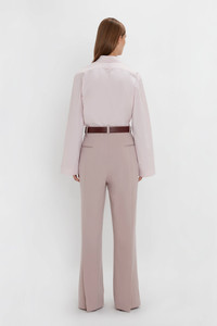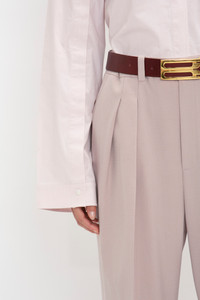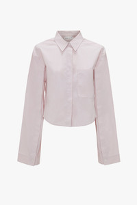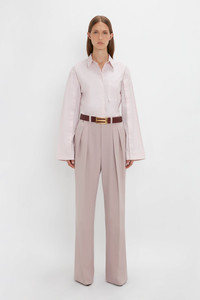 Masculine shirting is reimagined in a delicate shade of Rose Quartz and with a feminine cropped shape. The Button Detail Cropped Shirt has a button sleeve detail, which allows for a versatile silhouette, and a playful, pleated back hem. A pared-back concealed button-front closure and subtle embroidered VB monogram complete the look. Styled with the Double Pleat Trouser and Jumbo Frame Belt Product Details - Stretch Chambray - Cropped Length - Long Sleeve - Concealed Buttoned Front Closure - Buttoned Sleeve Detail For Alternate Styling Options - Tonal VB Monogram Embroidery At Wearers Left Body - External Hanging Tab At Back Body - Fits true to size, take your regular size - The model height is 180cm and is wearing a size 6 - 97% Organic Cotton 3% Elastane - Machine Wash 40C - Made in Turkey