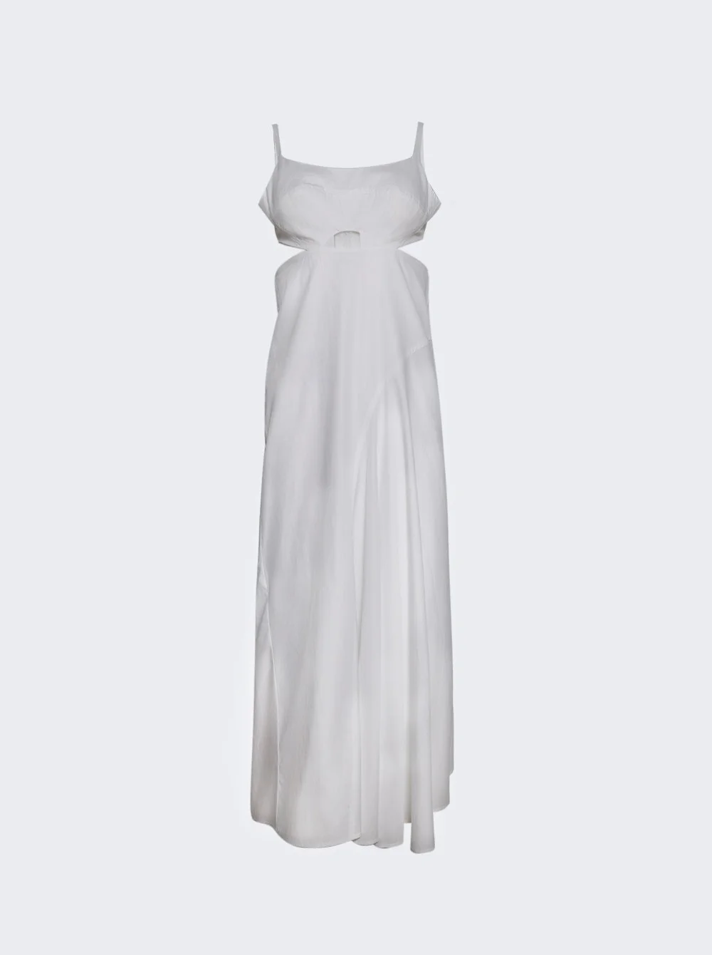 Details - Regular fit - Midi length - Thin straps - Cut out design - Rear zip closure - Care according to label - Material: 100% Organic Cotton - Model is 5'9"/175cm and is wearing a size UK8 Brand Style: 1125WDR006022A Designer/Brand: VICTORIA BECKHAM